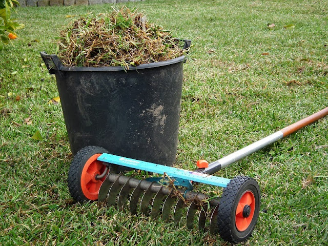 O escarificador manual com rodas é bem mais prático e eficaz que o ancinho, mas também se torna uma tarefa cansativa, tanto mais quanto maior for a zona a trabalhar. Daí que eu opte sempre por ir trabalhando faseadamente. Há que ter em conta que a escarificação faz-se uma ou duas vezes por ano, logo, a pessoa deve ponderar o custo/benefício, de investir muito dinheiro numa ferramenta cara, que pode usar-se uma só vez no ano. Mas já existem escarificadores elétricos a preços bastante acessíveis, e terão a vantagem de, por um lado serem mais rápidos a efetuar a tarefa, e por outro aliviar as costas do jardineiro! O escarificador manual tem a vantagem de poder ser usado em sítios mais pequenos e de difícil acesso, pelas maiores dimensões da máquina elétrica ou a gasolina.