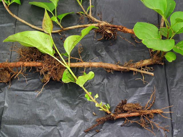 Já que estamos com a mão na massa, podemos aproveitar vários destes rebentos que brotam das raízes e aproveitar para fazer quantas novas plantas quisermos. Basta unicamente meter estes novos rebentos ainda com o pau velho e meter num vaso, rega-se e já está, temos uma nova planta de forma gratuita.