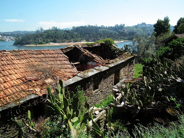 Mas foi já quando me preparava para abandonar a margem do rio, que me surpreendo com uns catos (Opuntia) no telhado de uma casa abandonada. Ao lado da casa, um canastro.