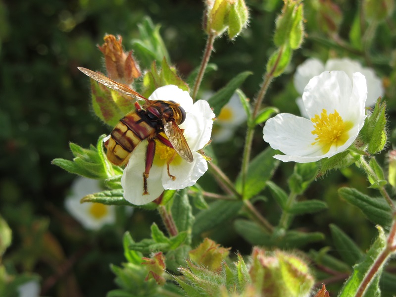 Por estes dias no jardim, andava um exército de insetos nas flores do meu sargaço. Maioritariamente vespas, mas também abelhas e lá pelo meio um verdadeiro OVNI que me chamou a atenção. À primeira vista parece ser uma abelha ou vespa, mas será mesmo assim? Se vissem este inseto qual seria a vossa primeira ideia?