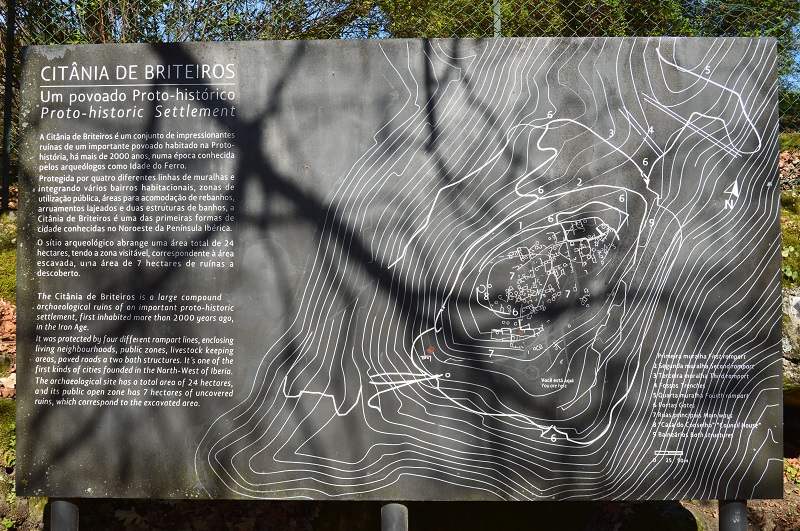 Entretanto, na exposição inicial ficamos a saber que a organização tinha decidido cortar do trilho a visita à Citânia de Briteiros (e percebo que como a entrada custa 3€, o grupo iria-se dividir e perder bastante tempo por ali) e a visita ao Museu de Cultura Castreja ficou agendado para depois de terminada a caminhada. Decidimos seguir com o grupo na frente e logo ver o que faríamos. E até que, mais ou menos a meio do percurso, quando alcançamos a estrada, resolvemos parar e decidir o que fazer. Decidimos ficar por nossa conta e risco (o meu amigo está sempre com os mapas dos percursos no GPS) e decidimos ir visitar a Citânia de Briteiros, porque, como dizia o meu amigo "vir a Briteiros e não visitar a Citânia...! (que ficava a poucas centenas de metros dali) enquanto todo o grupo restante seguia o plano estabelecido.