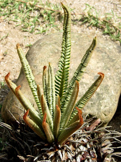 Entretanto comecei a reparar numa cyca, sempre muito bonita, no canteiro de uma vivenda aqui da aldeia. E certa vez reparei que ela apareceu completamente sem folhas. E depois fui vendo que a planta rapidamente puxava nova brotação, até porque as plantas respiram e fazem a fotossíntese graças às folhas e planta sem folha tem de fazer esse esforço para lançar nova folhagem.