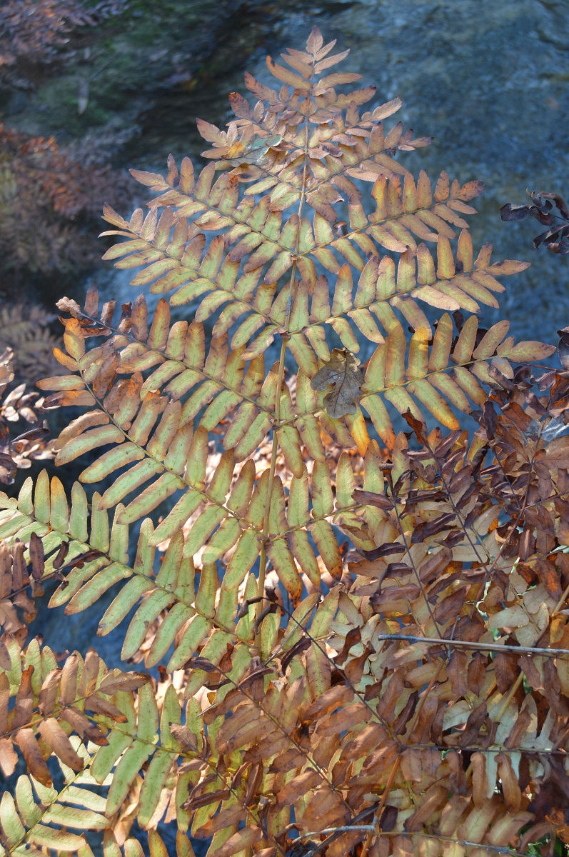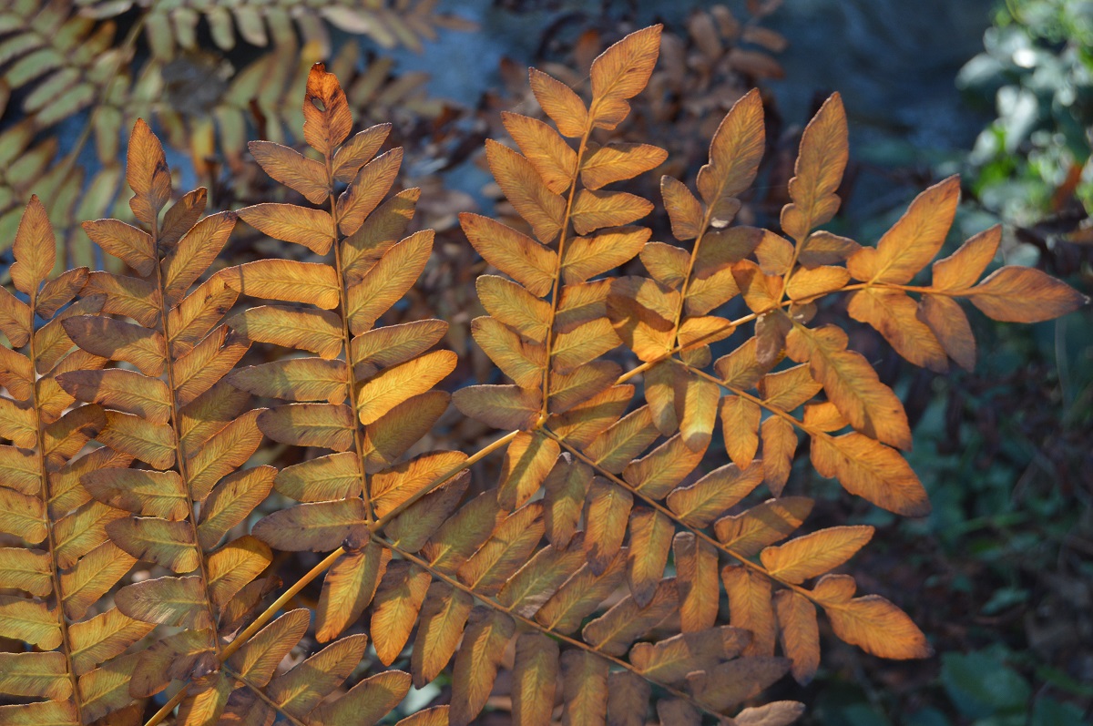 Nas margens do rio viam-se bonitos fetos, com cores outonais.