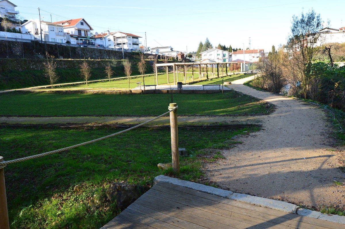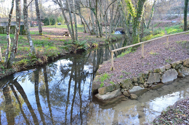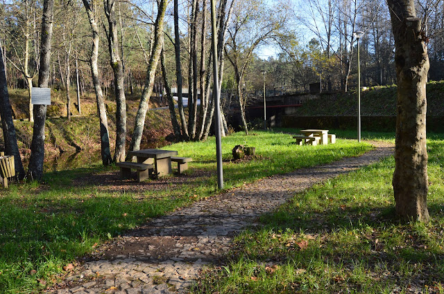 Estacionei mesmo junto a uma fonte pública, mesmo defronte das Termas, onde vi várias pessoas a encher vários garrafões para levar para casa, e passeei primeiro por ali, onde tem uma bonita área de lazer, para adultos e parque infantil para os mais novos, um campo de futebol, um coreto, e vários equipamentos, agora muito em voga, para fazer exercício físico. Para logo depois inverter e começar o percurso.
