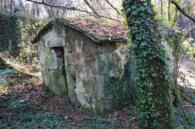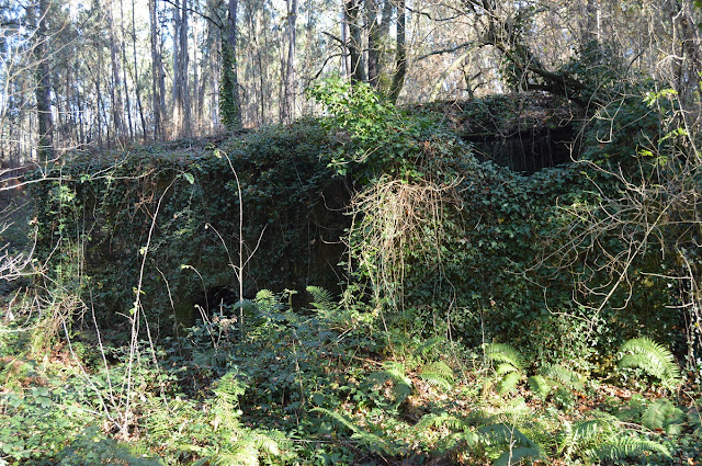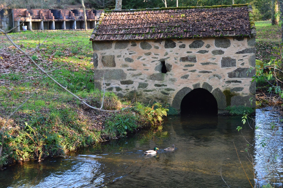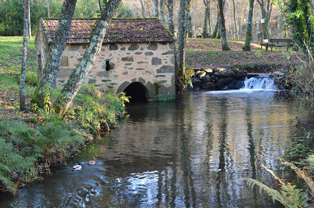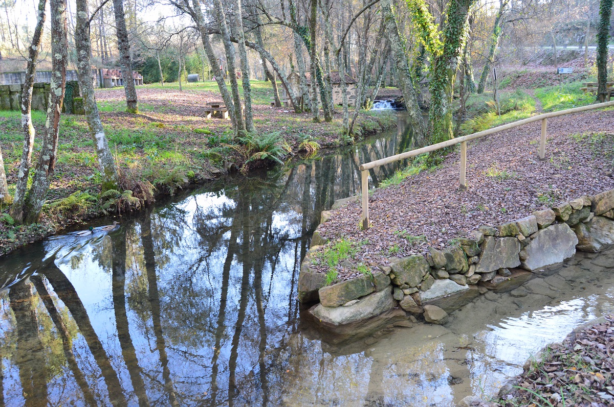Ao longo do percurso passei por várias edificações, algumas que deu para perceber que seriam antigos moinhos de água. Até vislumbrei por entre as silvas uma grande mó em granito.