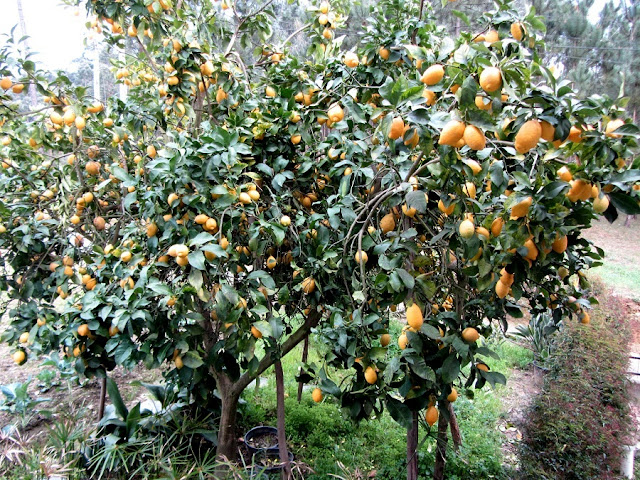 Os meus pais, têm um limoeiro, já de porte médio, que de vez em quando tem de ser aparado porque os limoeiros puxam grandes rebentos verticais, e este também nunca sofreu sevícias! Dá muitos limões que dá gosto ver, mesmo em anos em que generalizadamente a vizinhança se queixa de pouca produção.