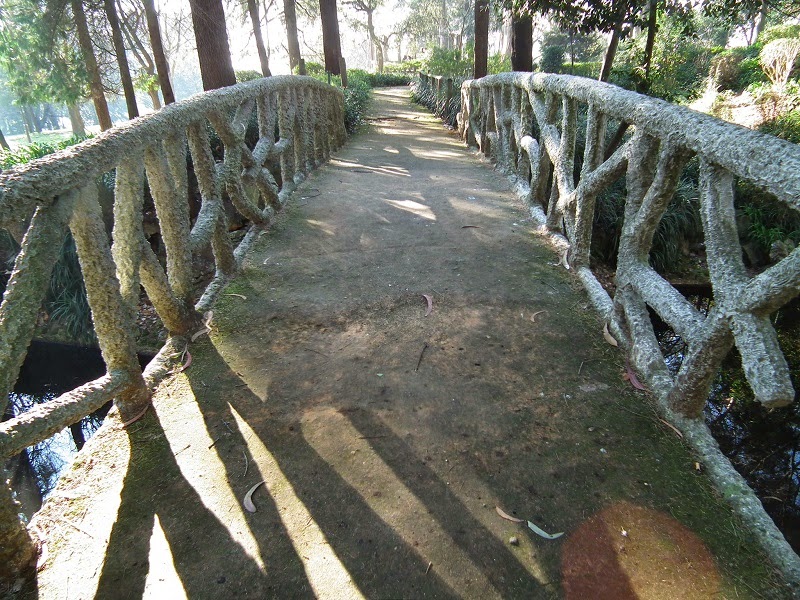 Continuando pela estrada do parque, subindo escadas e caminhos, vamos chegando aos pontos de interesse a norte, o lago e a ponte por onde se passeiam patos, e outros habitantes, e também uma estrutura onde estão plantadas trepadeiras, em que a ideia é que subam e a tapem totalmente,