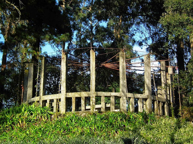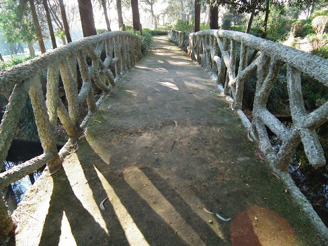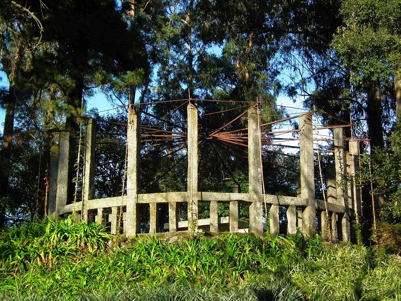 Como referi, perto do lago, encontramos uma estrutura com pilares de granito e uma estrutura em ferro. Em cada pilar colocaram uma cana a servir de sustentação às trepadeiras.