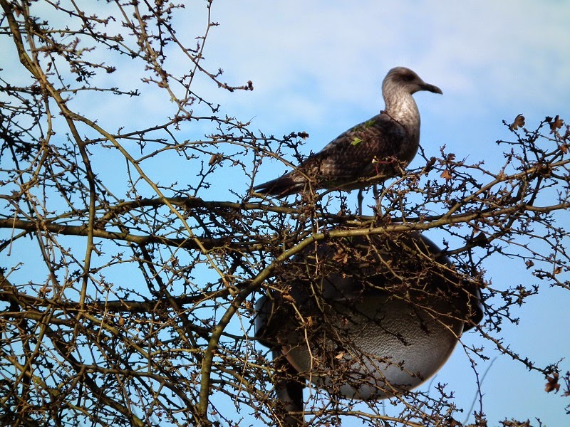 Nesta zona do lago podemos encontrar alguns habitantes, como patos, gaivotas, pombas, gatos, gaios, melros, e se não virmos, poderemos sempre ouvir o pica-pau verde com o seu canto estridente muito caraterísitco. Desta última vez que lá estive, vi vários gaios a remexer na terra e musgo à procura de alimento, bem com os melros e um pica-pau verde, mas sempre muito esquivo que não consegui fotografar.