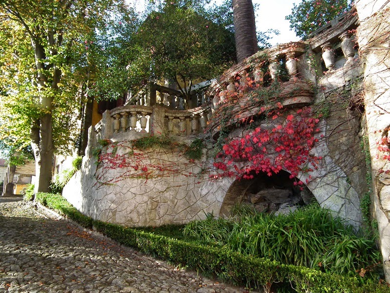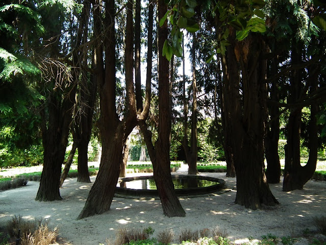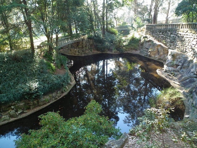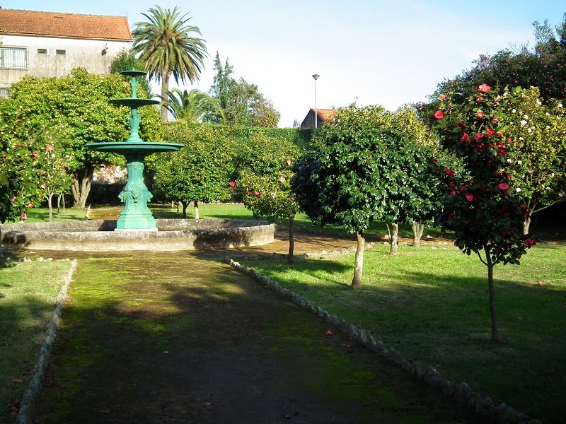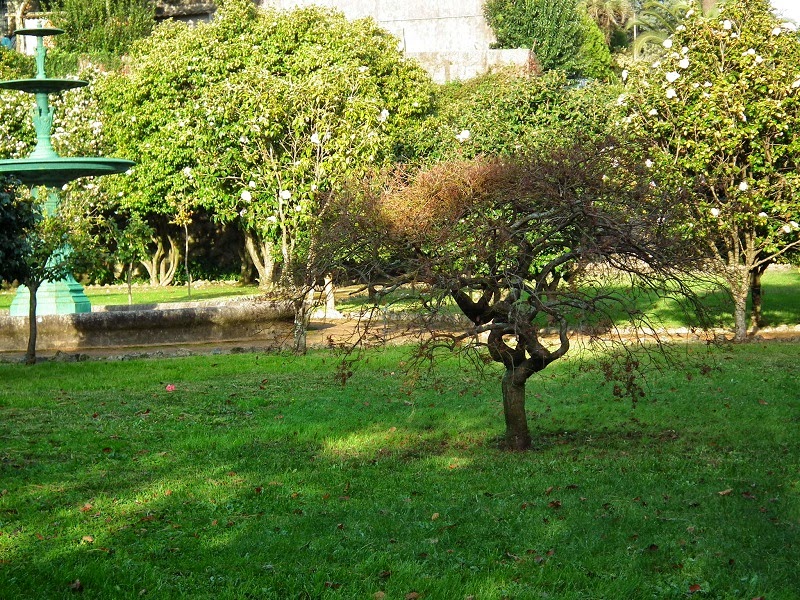 Um outro espaço delimitado que encontramos a seguir, é uma zona povoada de camélias, com um imponente chafariz no centro, e bancos debaixo de uma estrutura com uma trepadeira, que agora de inverno se encontra caduca, permitindo assim apanhar alguns raios de sol. Ao fundo um tanque com alguns peixes.