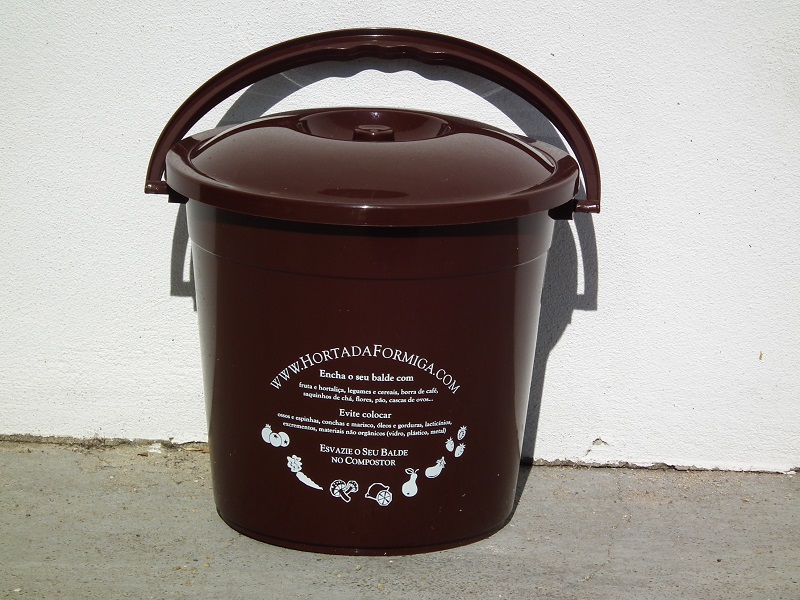Além do compostor é entregue também um pequeno balde para encher com os restos da cozinha: