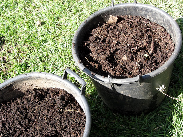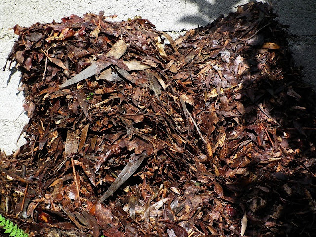 Tenho neste momento uma pilha relativamente grande - e já tenho novas ideias para um compostor improvisado por mim - e tinha uma segunda pilha, mais pequena, da qual retirei parte para encher completamente este compostor.