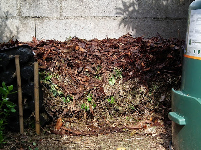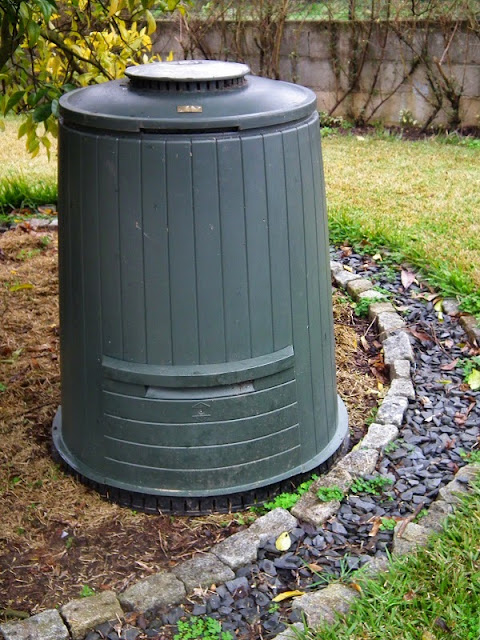 Não, eu não descobri as maravilhas da compostagem caseira por estes dias. Já faço compostagem há vários anos sem a obrigatoriedade de ter um compostor todo bonitinho! Até agora juntava os restos do jardim (relva, restos de podas, folhas secas) numa pilha e tinha o problema resolvido. A pilha tem as suas vantagens porque podemos revirá-la com toda a facilidade, e um dos segredos para acelerar o processo é ir remexendo tudo frequentemente. Mas também tem as suas desvantagens. Por não ser coberta e estar a céu aberto, os melros adoram remexer e espalhar bocados, o que implica que tenha de andar sempre a voltá-los a colocar no sítio, e enquanto isso não acontece, não estão na pilha a aquecer e decompor.